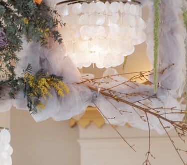 I think my favorite aspect of this design is the mixed mediums-- The tulle fabric creates a whimsical feel with florals taking center stage. The forsythia extends upwards to create the aspect of growth and grandeur.